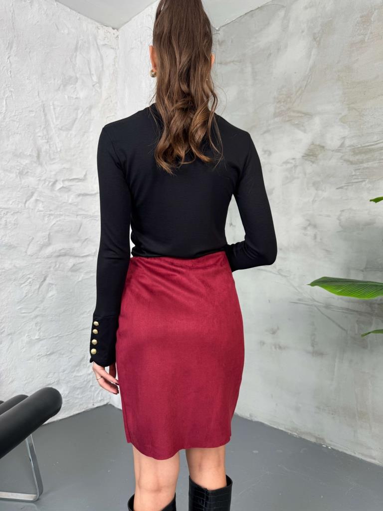 Bordo Yırtmaçlı Süet Etek (29273-Bordo)
