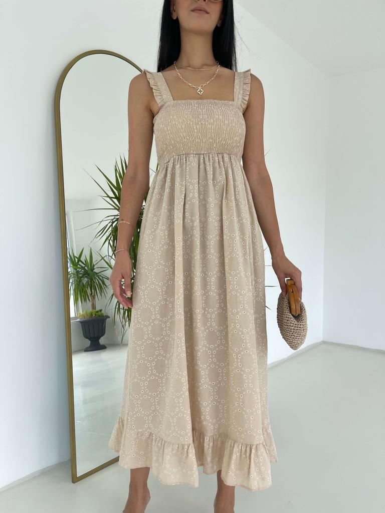 Camel Kalın Askılı Fisto Elbise (58315-CAMEL)