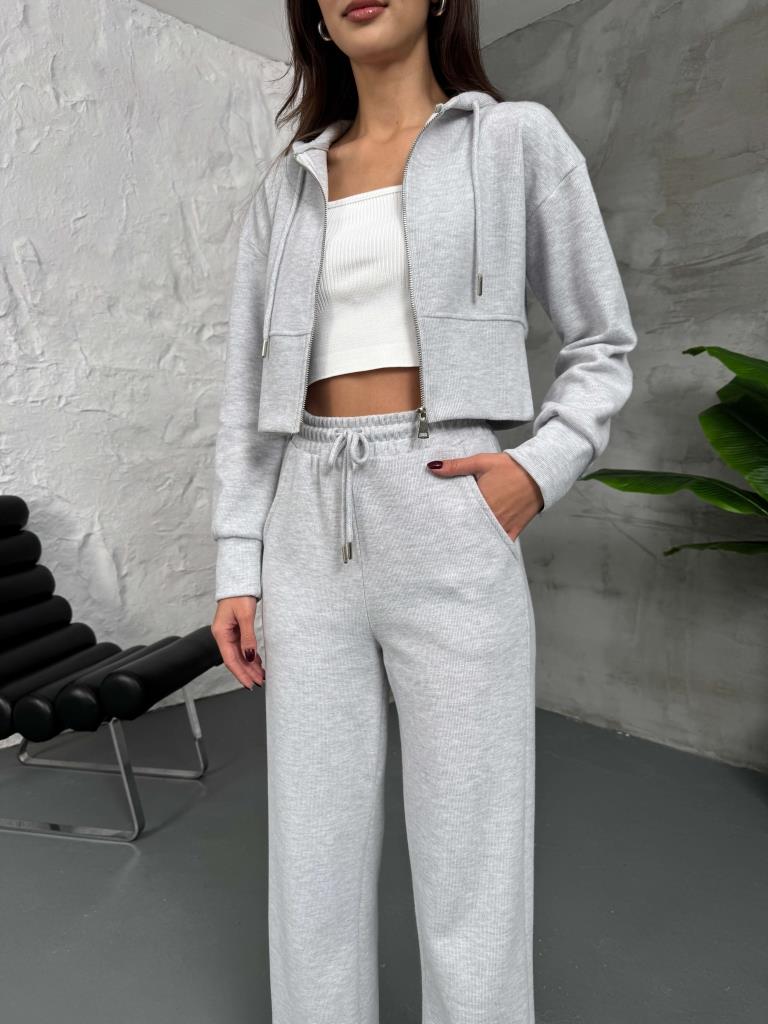 Gri Ön Fermuarlı Kapüşonlu Selanlk Takım (EY2030-Gri)