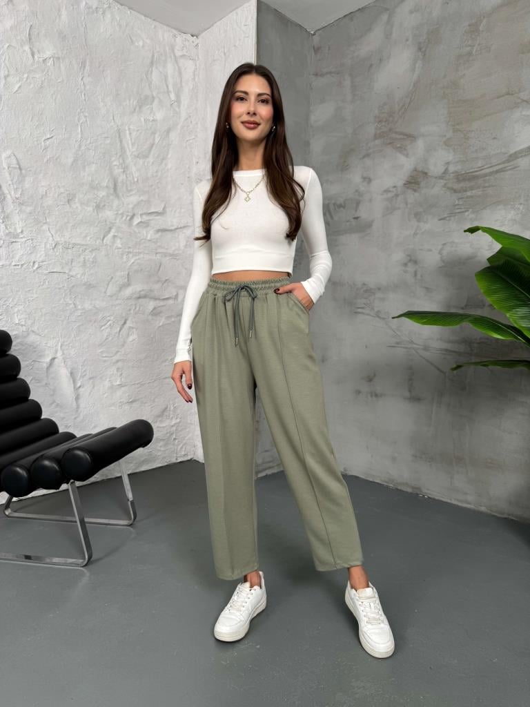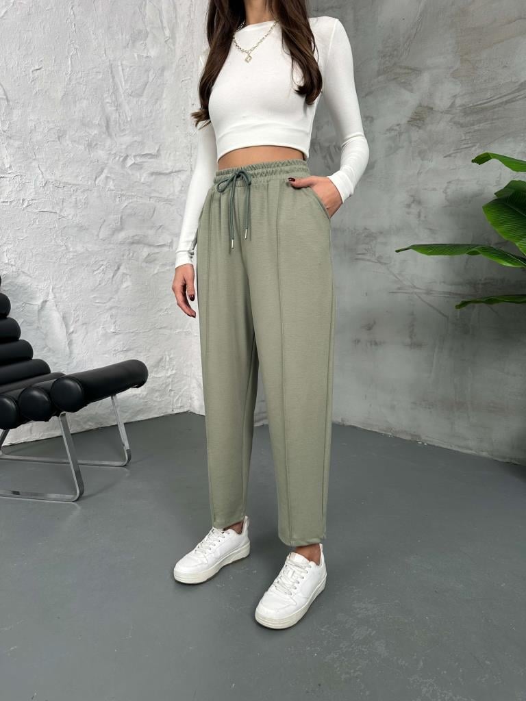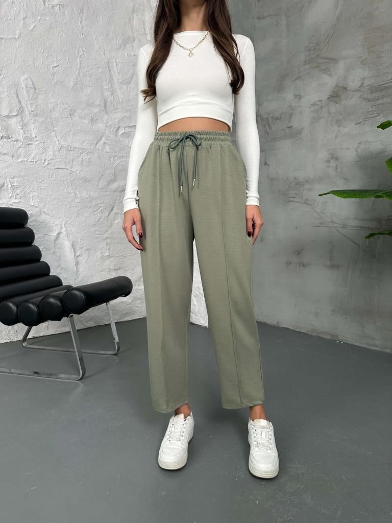 Haki Biyeli Beli Bağcıklı Modal Eşofman (EY8007-Haki)