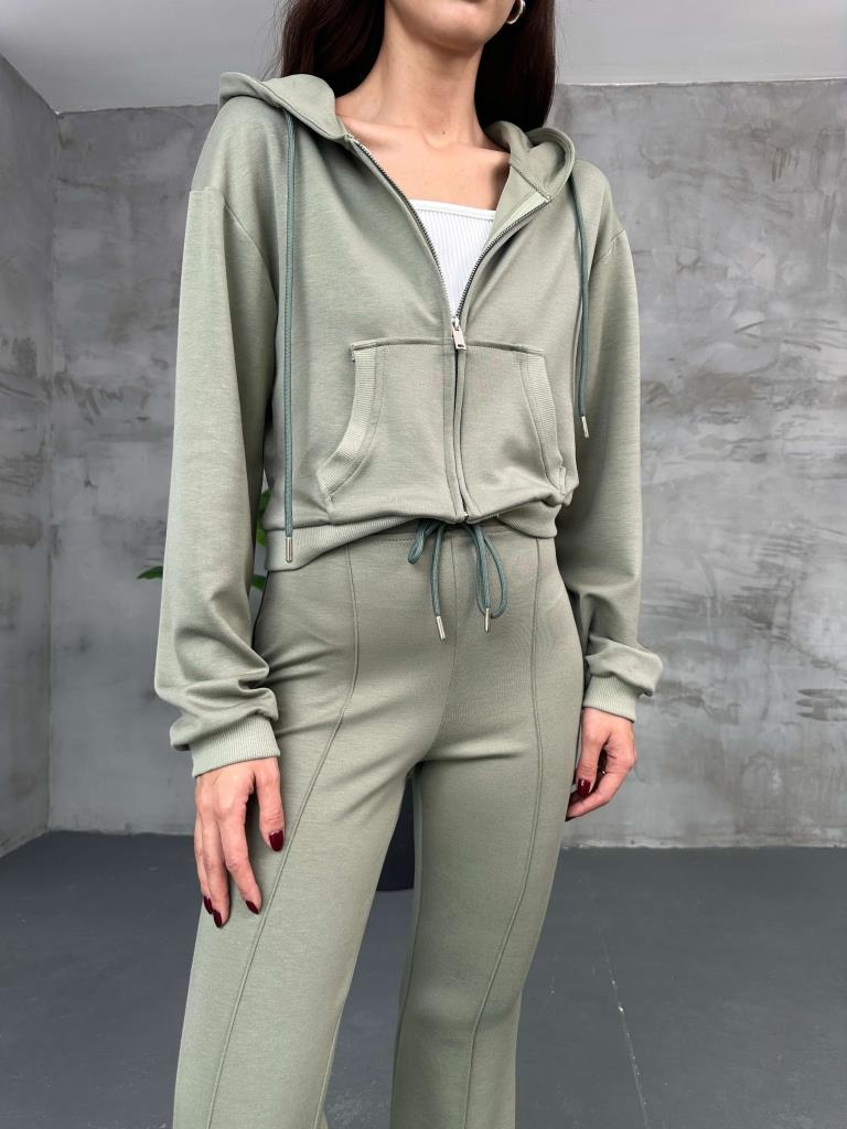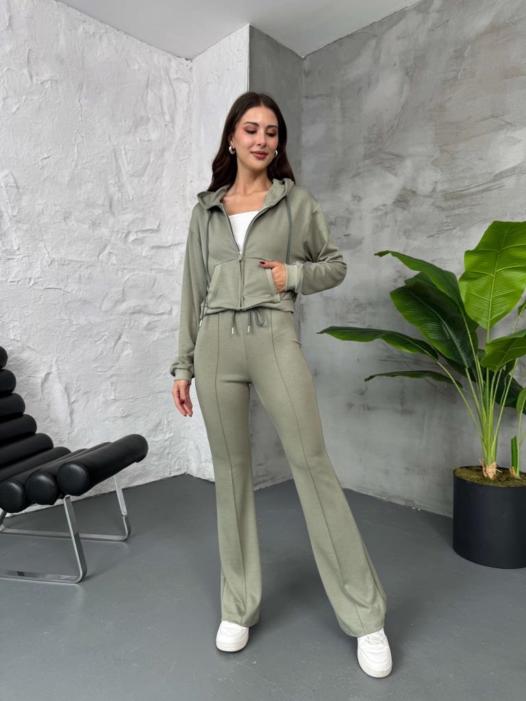 Haki Dikiş Detay Fermuarlı Sweat Takım (4039-Haki)