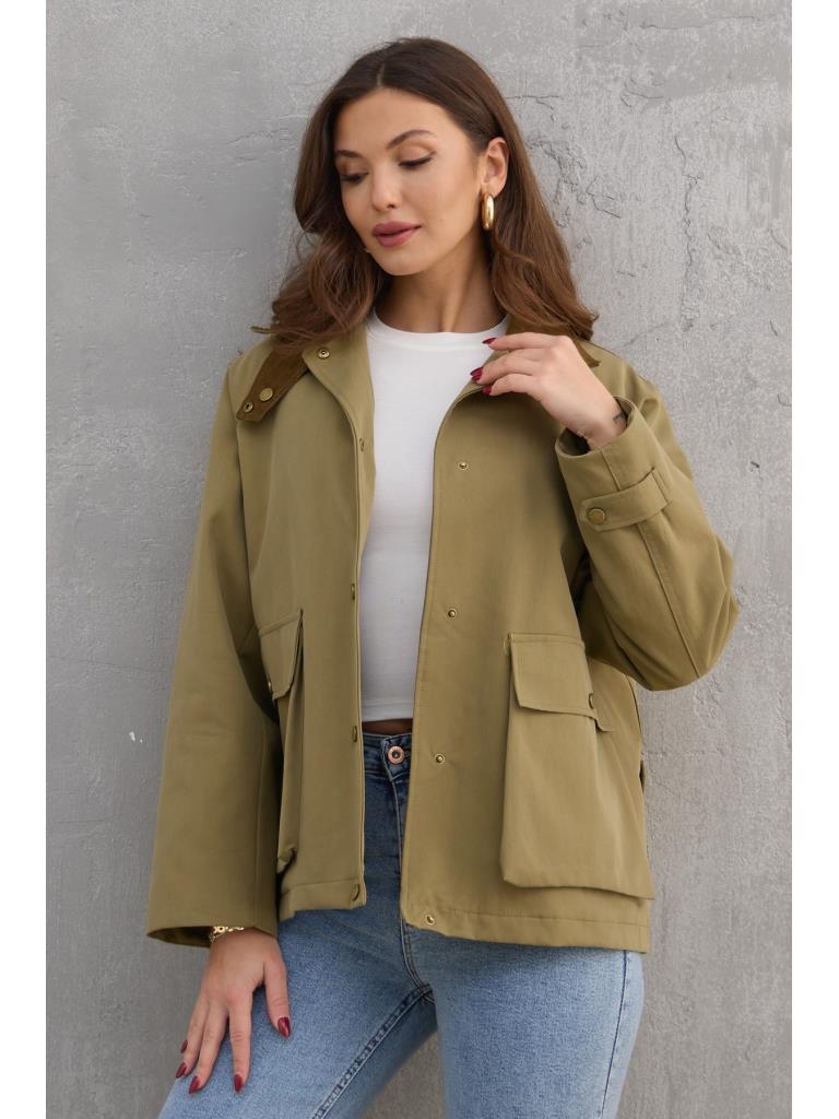 Haki Kadife Yaka Kısa Mont 0213-HAKİ