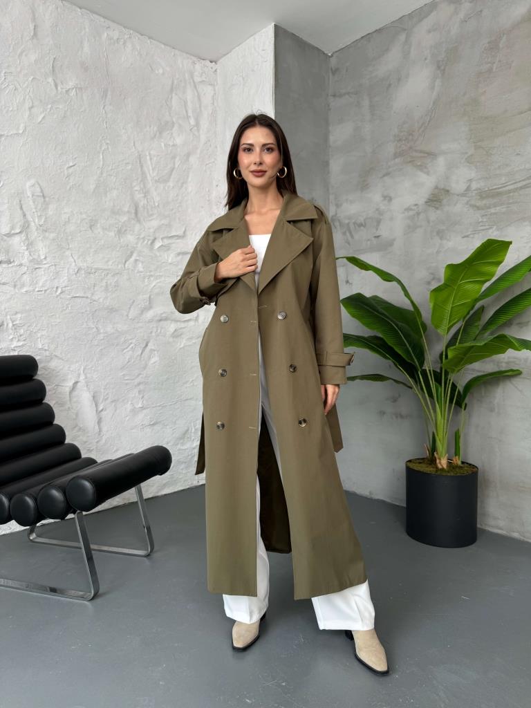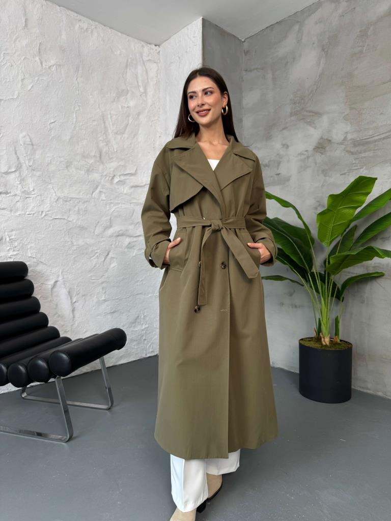 Haki Kuşaklı Maxi Trenç (0535-HAKİ)