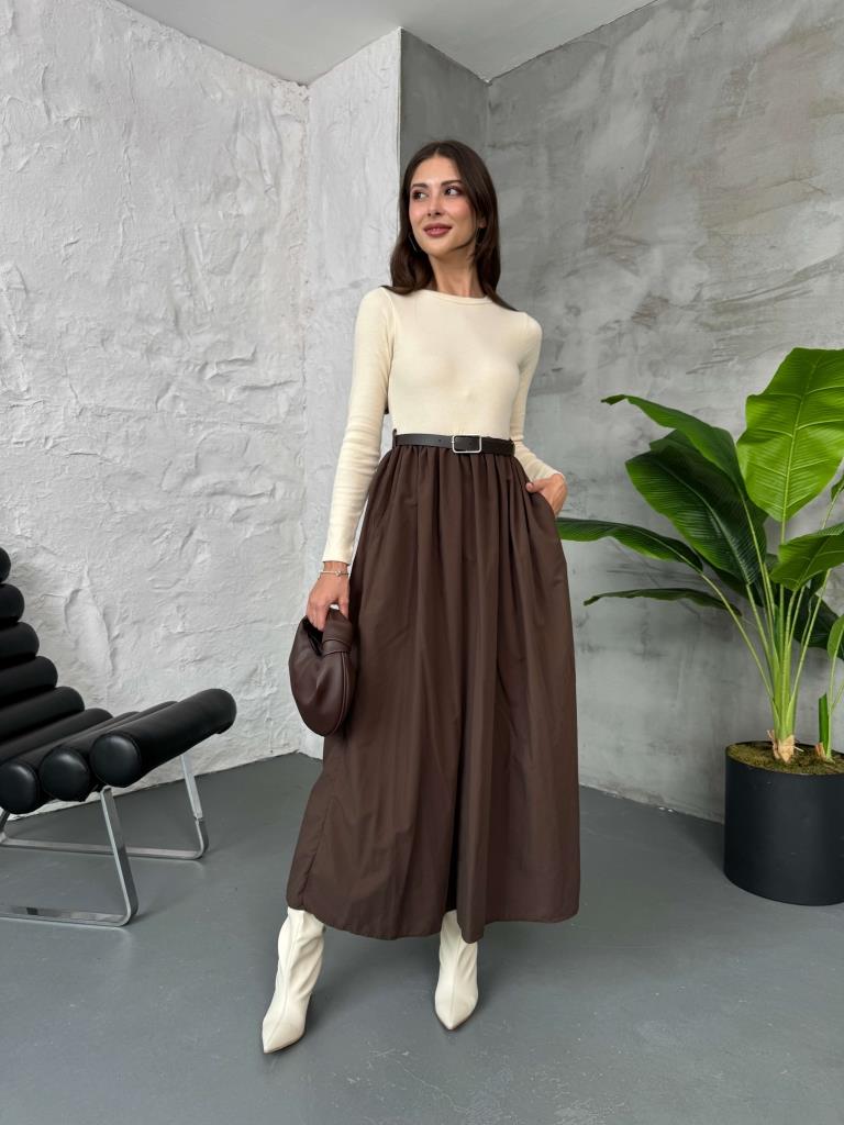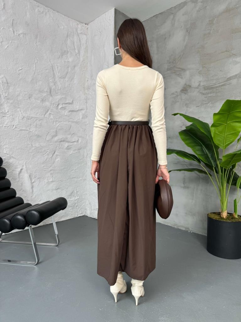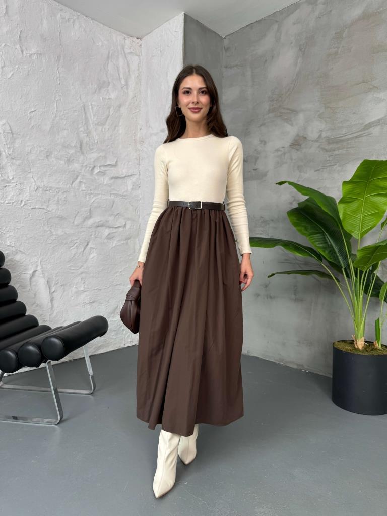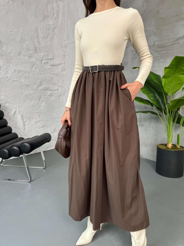 Kahve Kemerli Maxi Elbise (2018-Kahve)