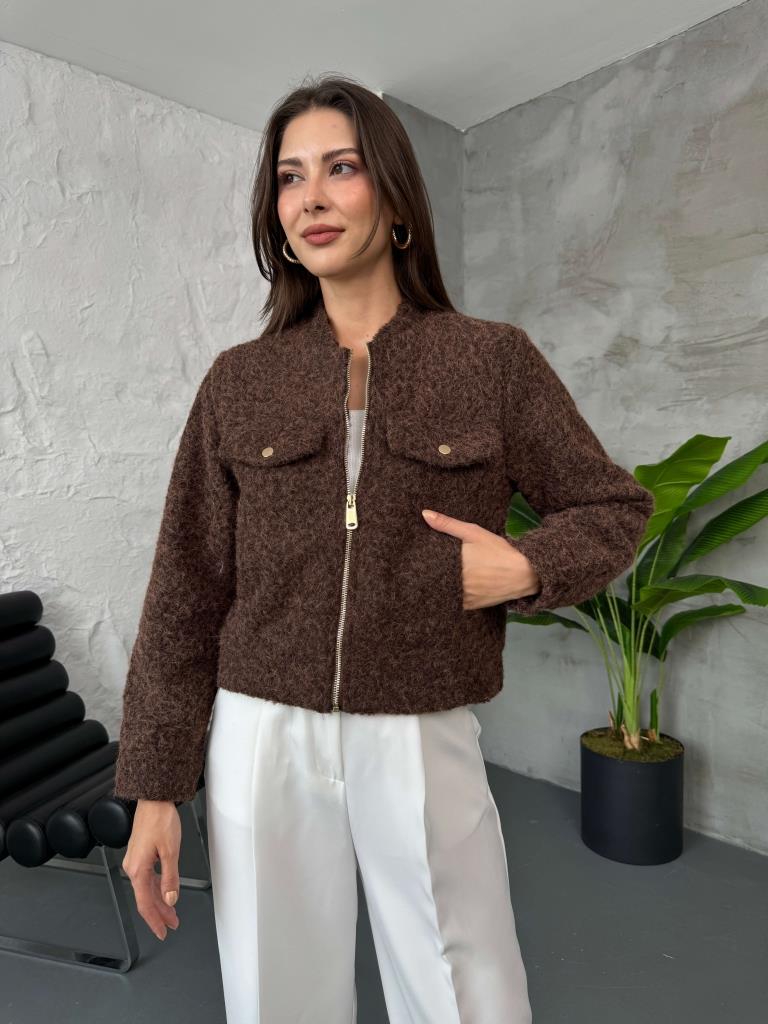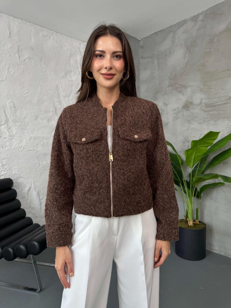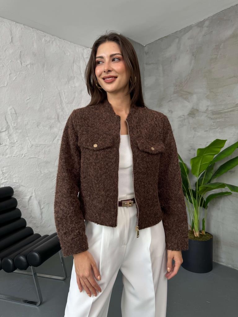 Kahverengi Cep Detaylı Kırçıllı Ceket (580518-Kahverengi)