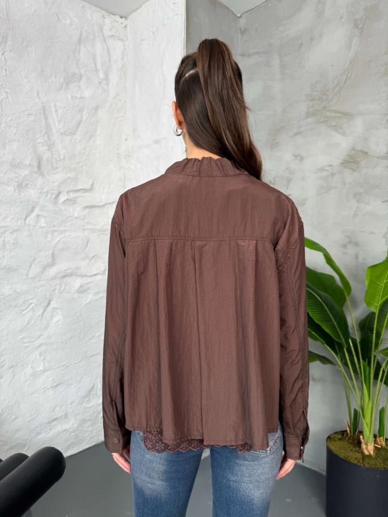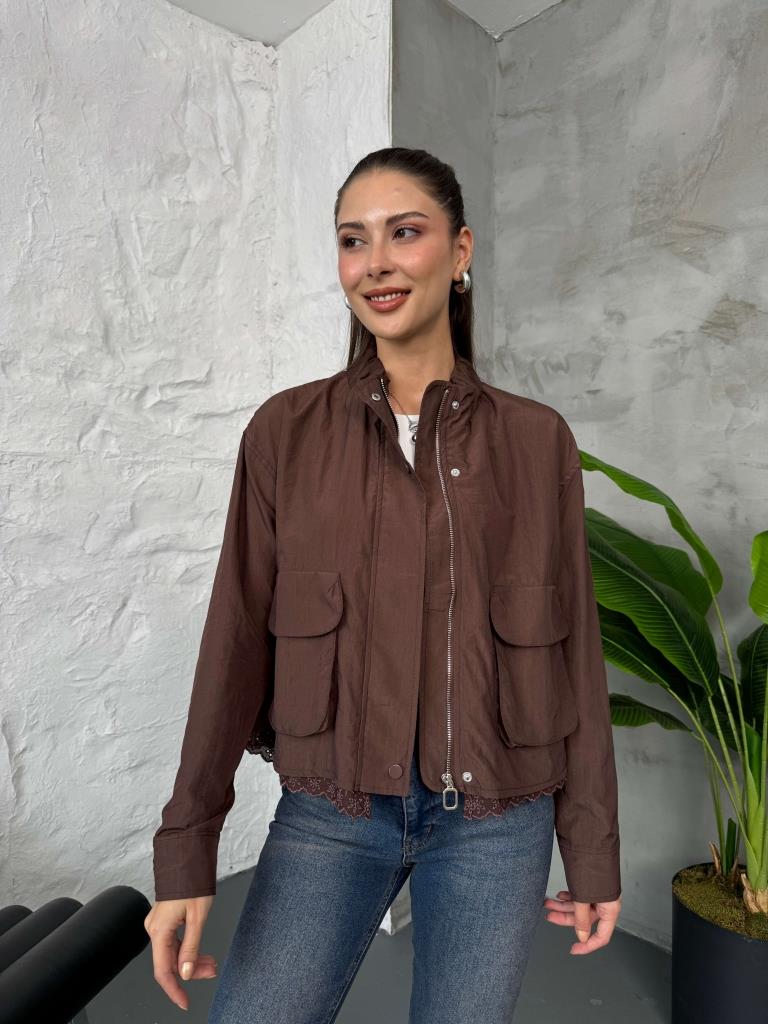 Kahverengi Dantel Etek Uçlu Premium Ceket (52110001-Kahve)