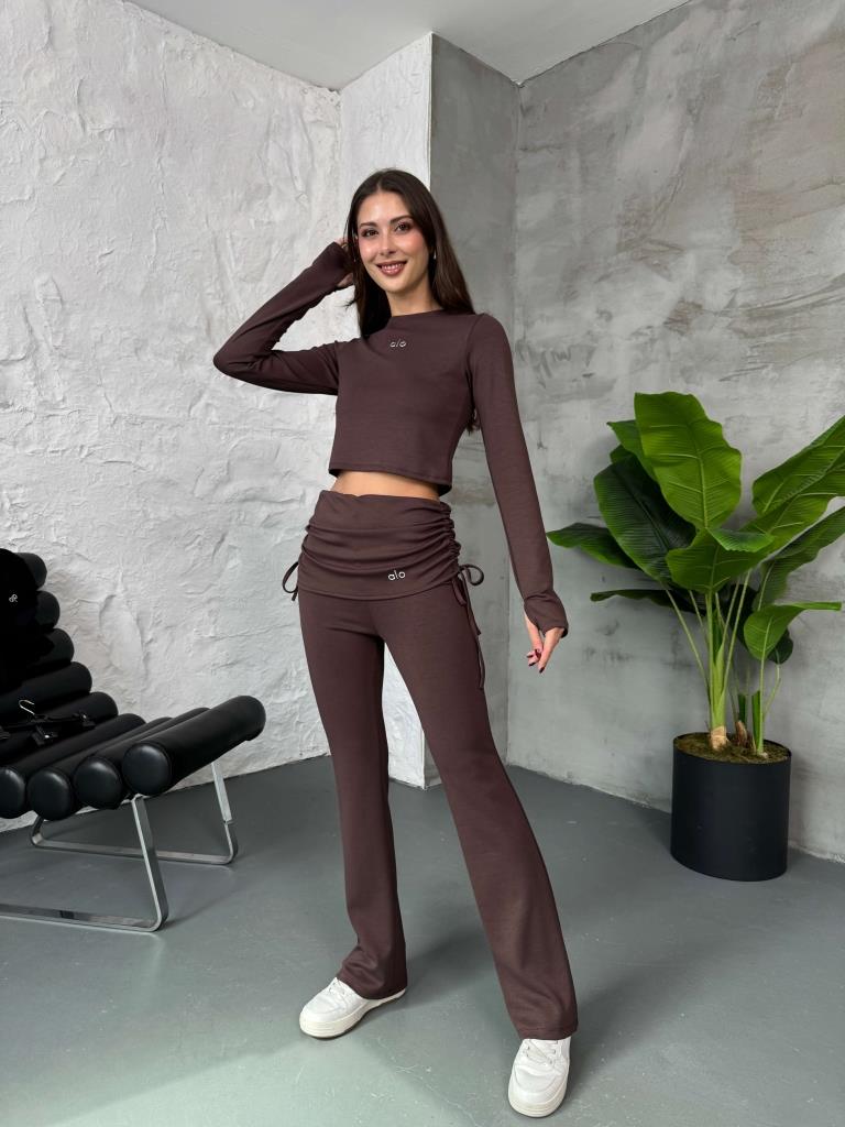 Kahverengi Etek Katlamalı Takım (4033-Kahverengi)