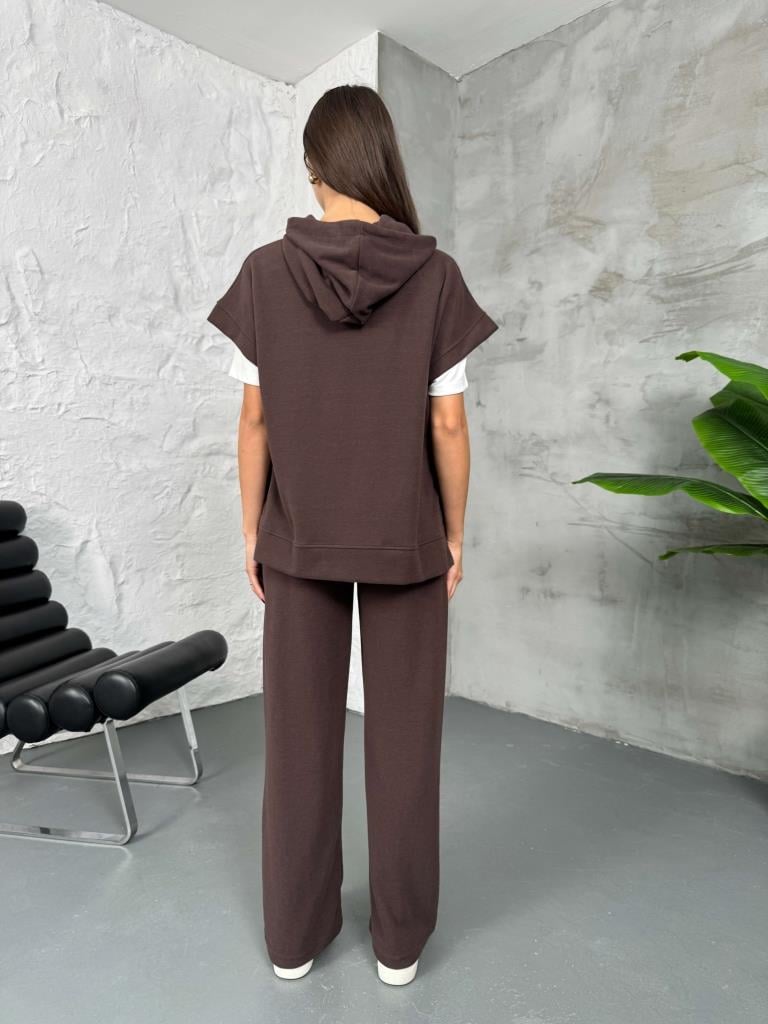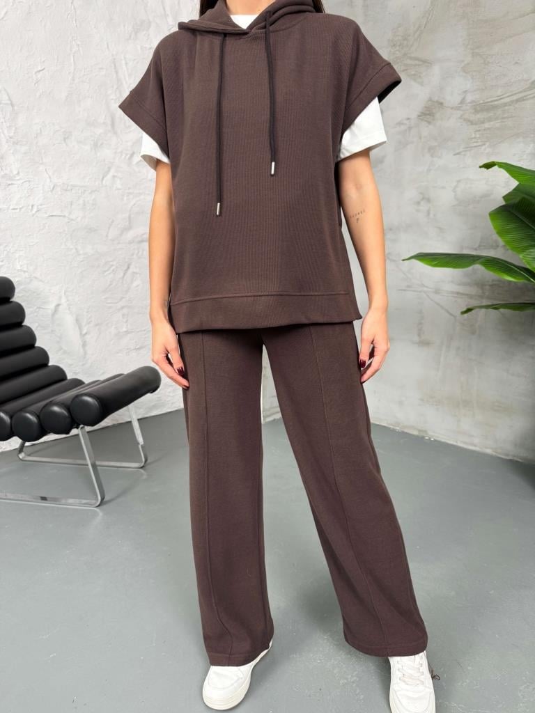 Kahverengi Kapüşonlu Kısa Kol Selanik Takım (2331-Kahverengi)