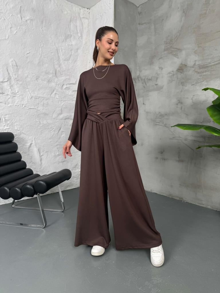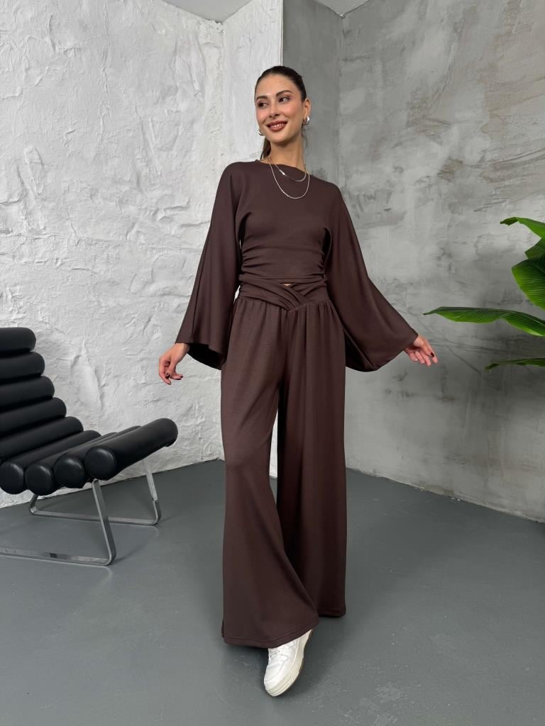 Kahverengi Kemer Pileli Kolları Volanlı Takım (2136-Kahverengi)
