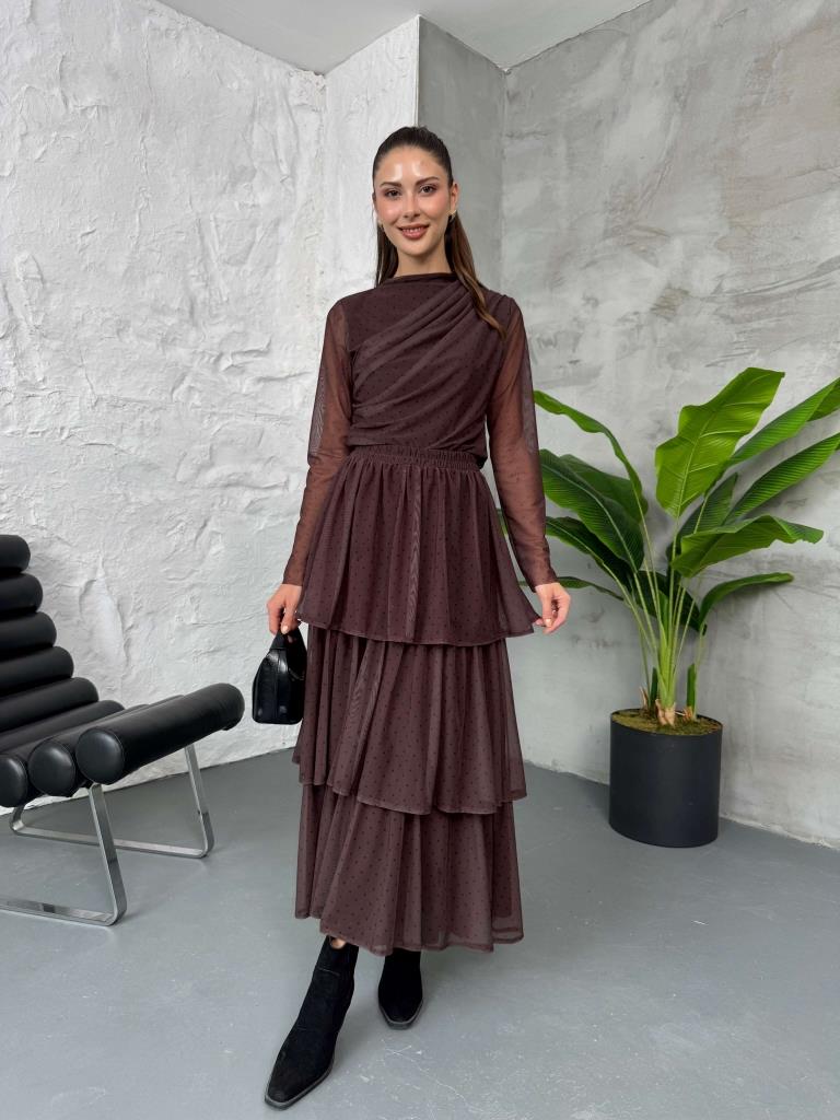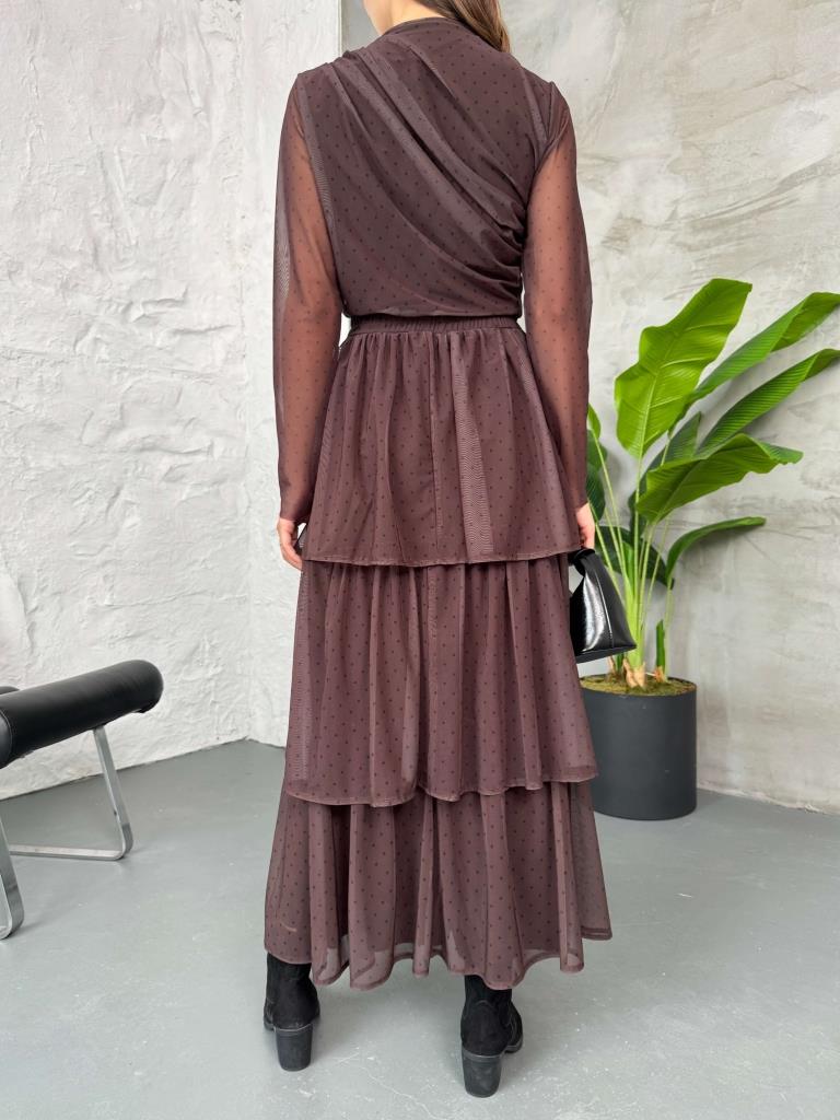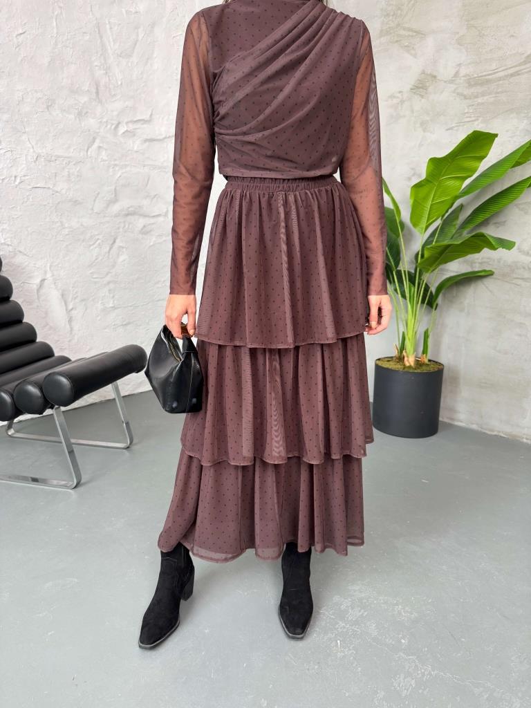 Kahverengi Puantiyeli Maxi Kat Kat Etek (103008-KAHVERENGİ)