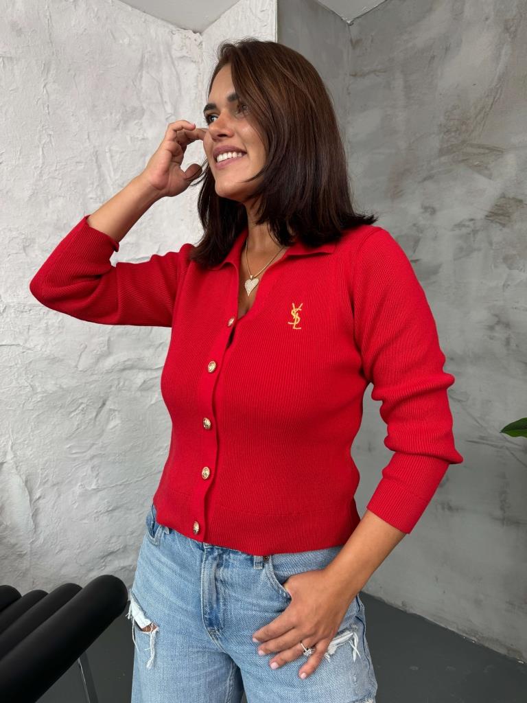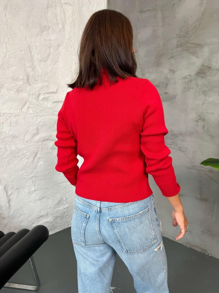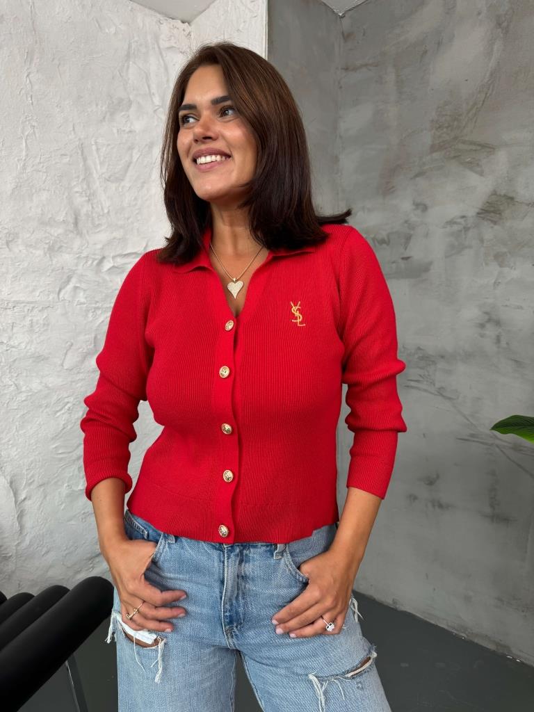 Kırmızı Gold Düğmeli Polo Yaka Hırka (EM-001-Kırmızı)