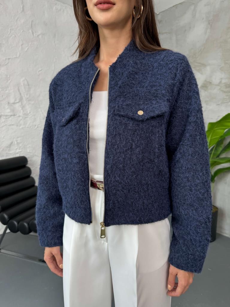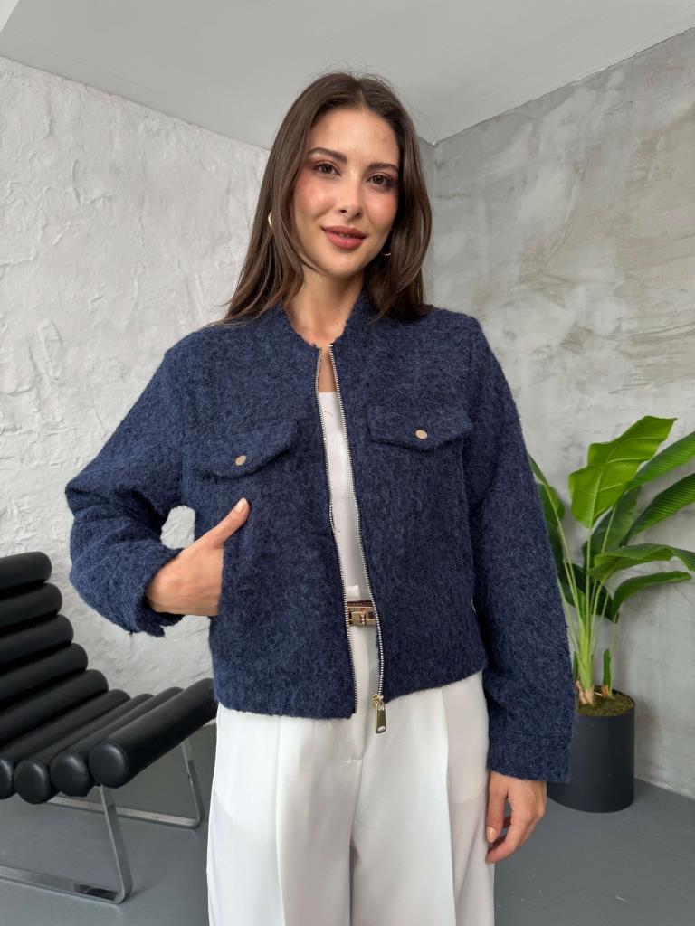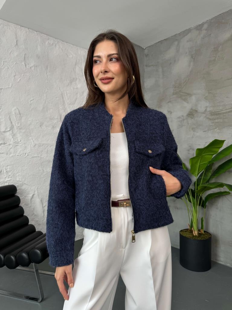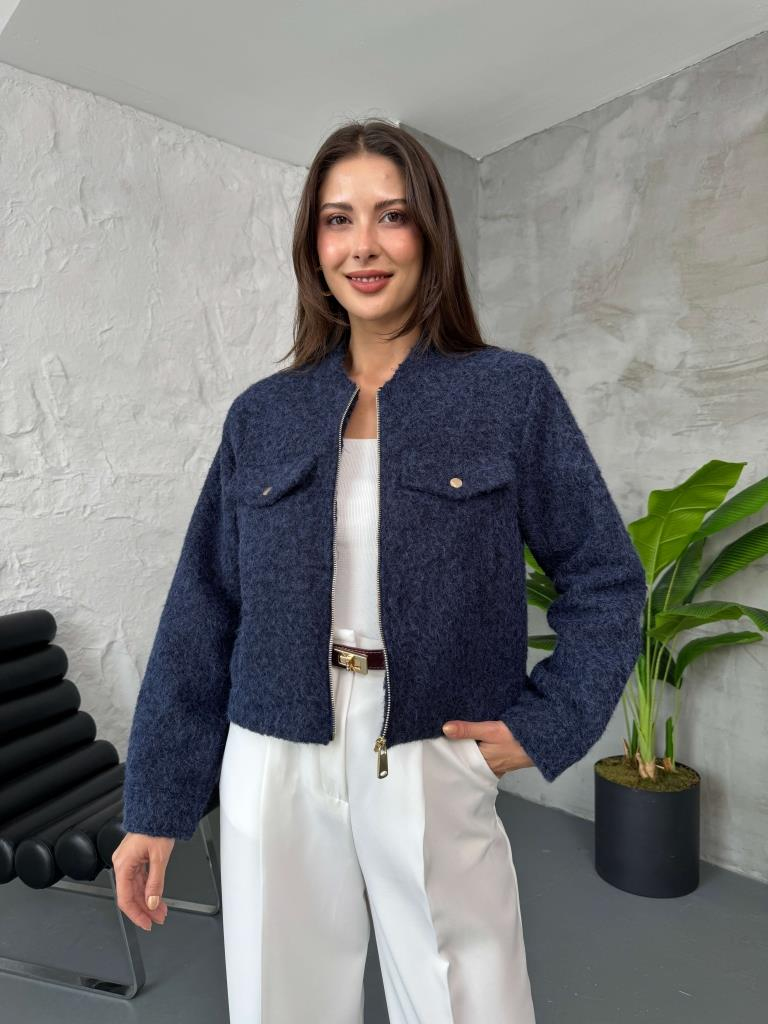 Lacivert Cep Detaylı Kırçıllı Ceket (580518-Lacivert)