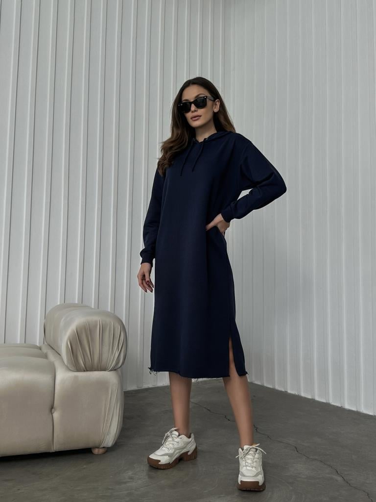 Lacivert Kapşonlu Sweat Elbise (CR23FW-1275-LACİVERT)