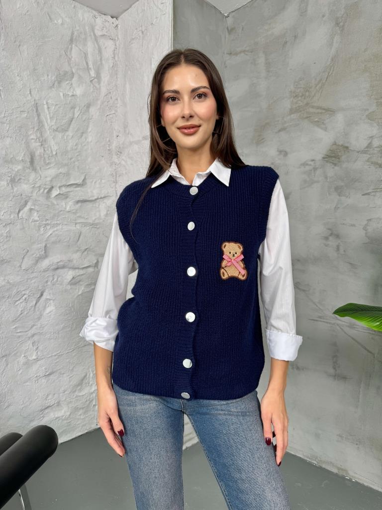 Lacivert Teddy Nakışlı Süveter (2467-LACİVERT)