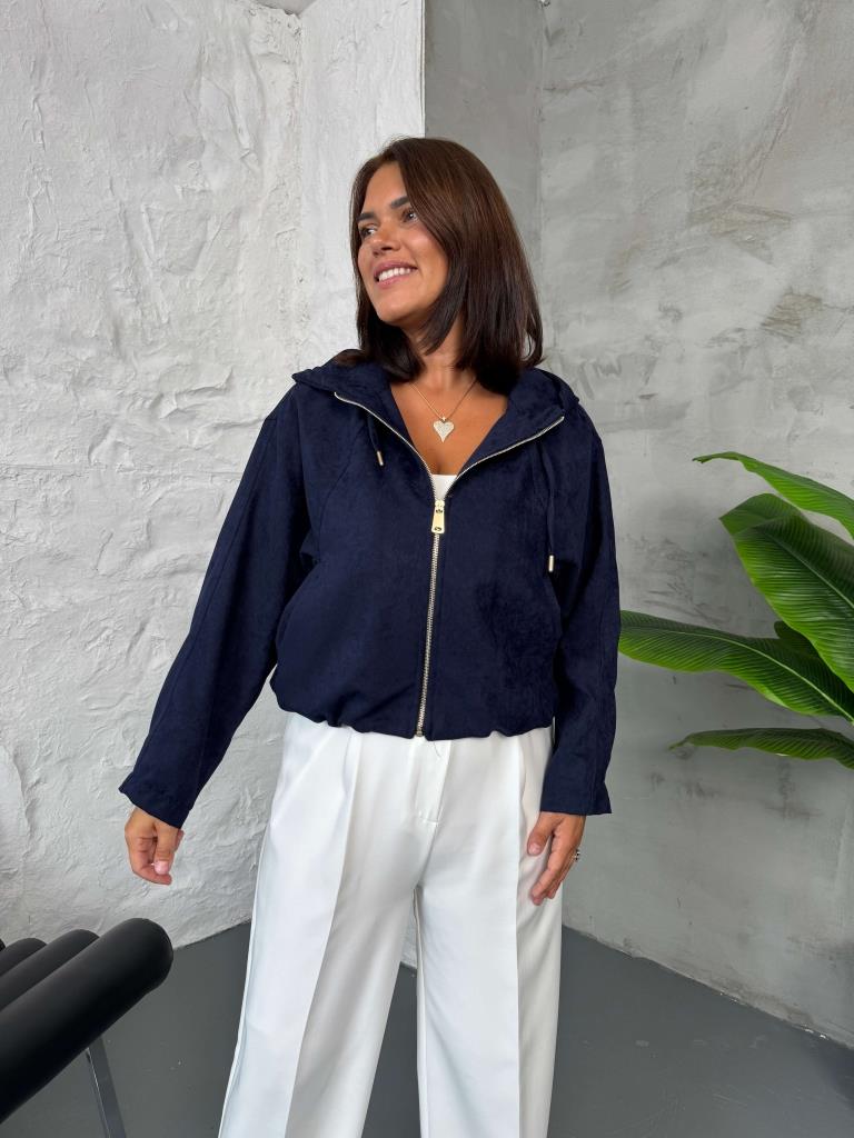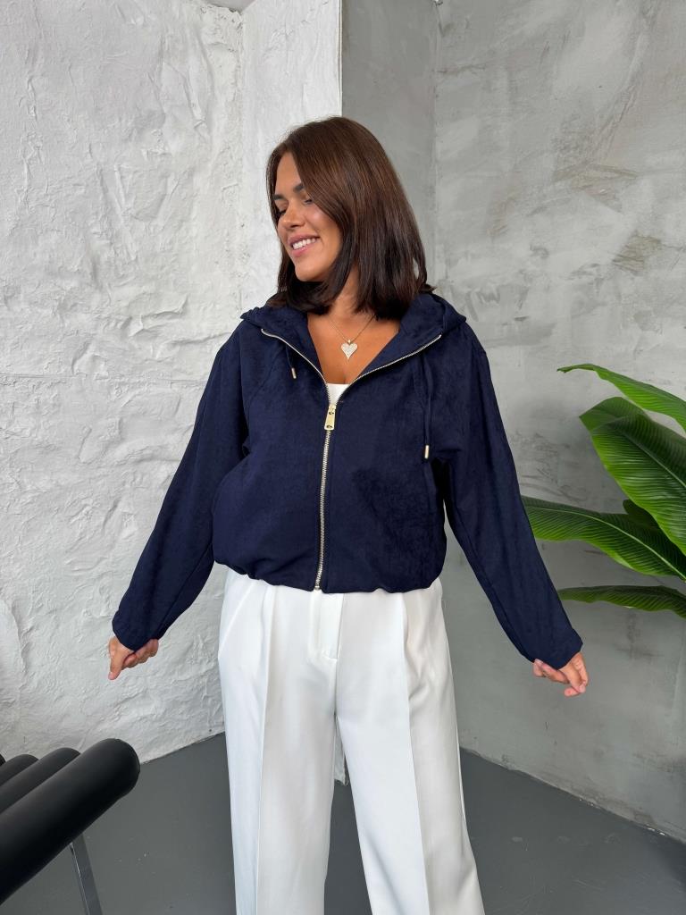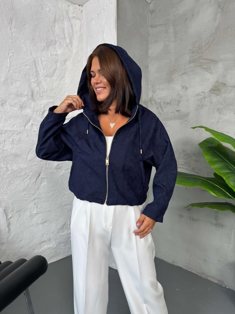Lacivert Zr Model Kapşonlu Süet Ceket (580542-Lacivert)