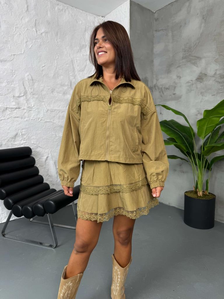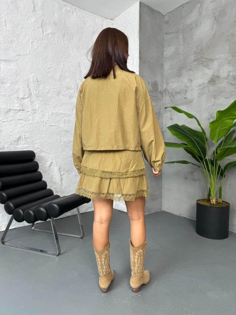 Olive Güpür Detaylı Etekli Takım (6001-OLİVE)
