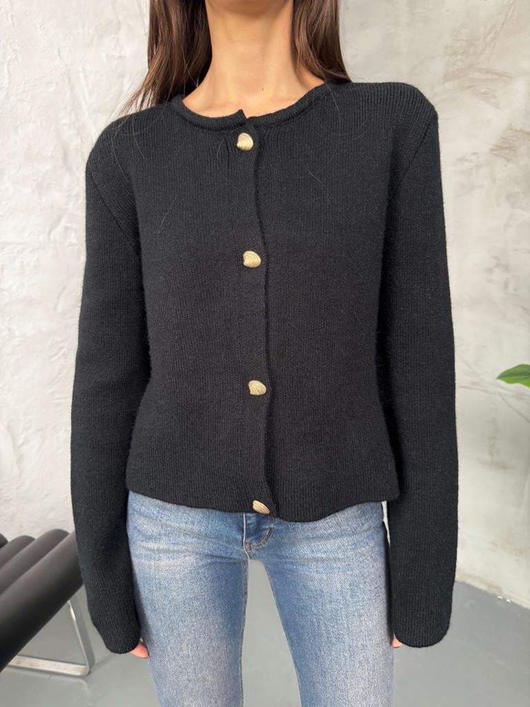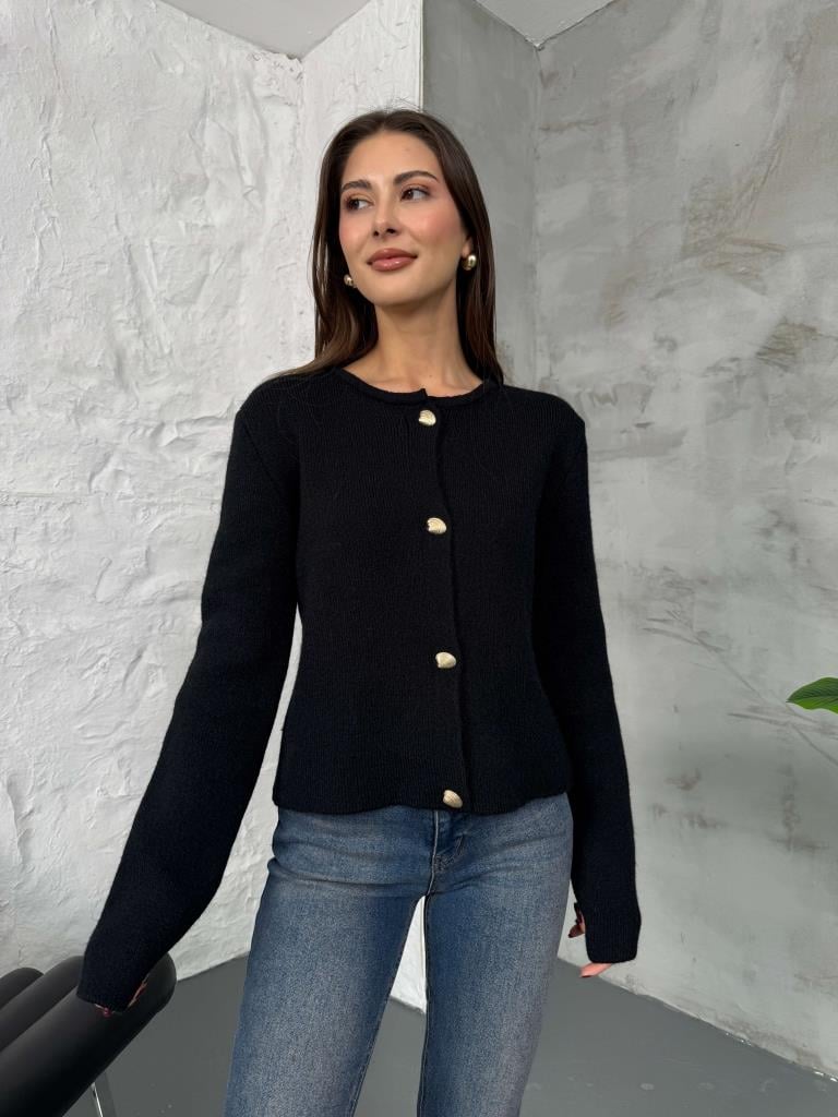 Siyah Deniz Kabuğu Düğmeli Kalın Hırka (0006-SİYAH)