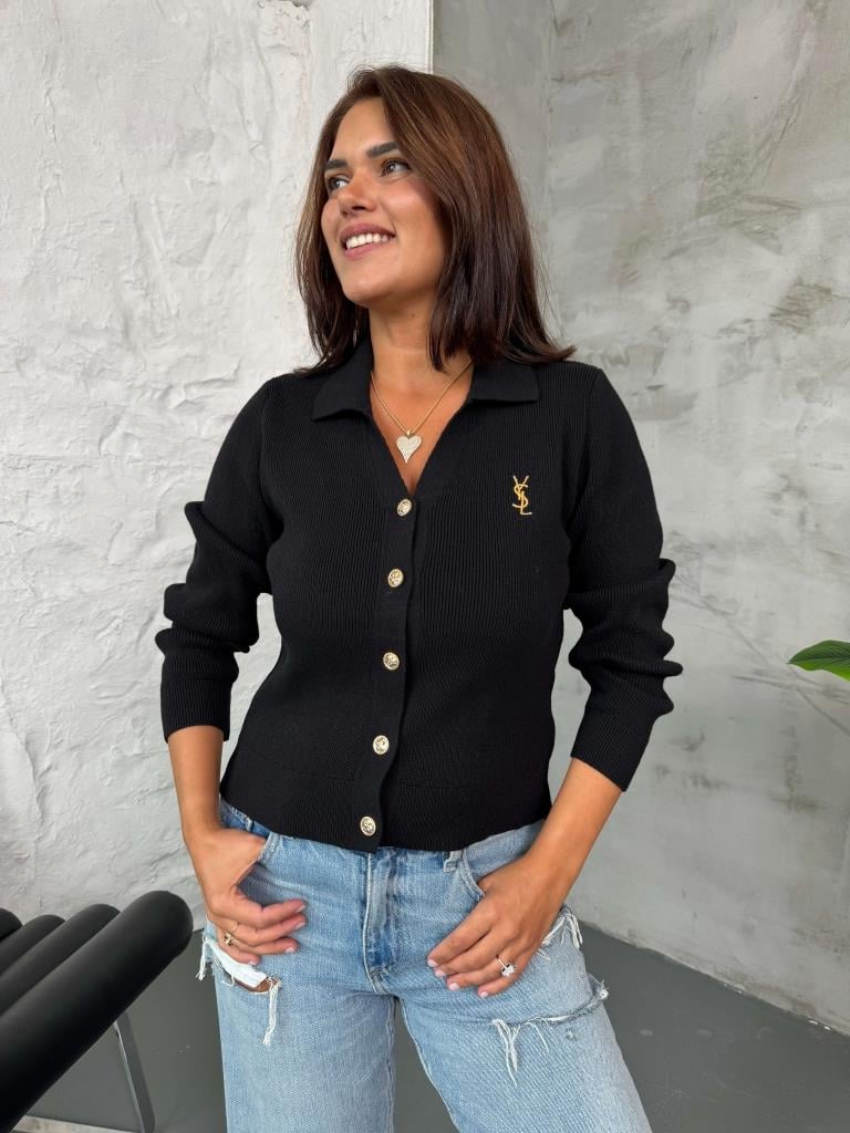 Siyah Gold Düğmeli Polo Yaka Hırka (EM-001-Siyah)