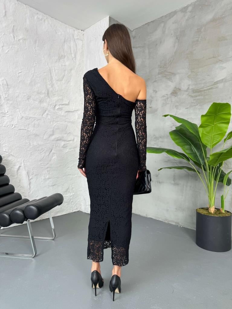 Siyah İthal Dantel Büzgülü Elbise (00569-Siyah)