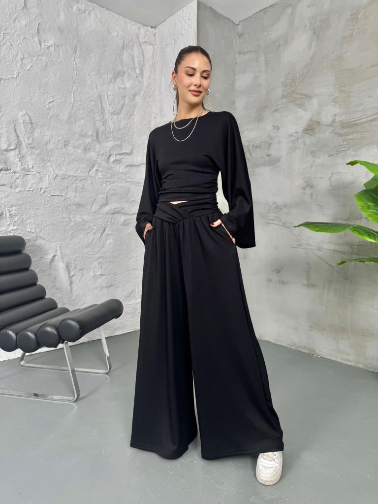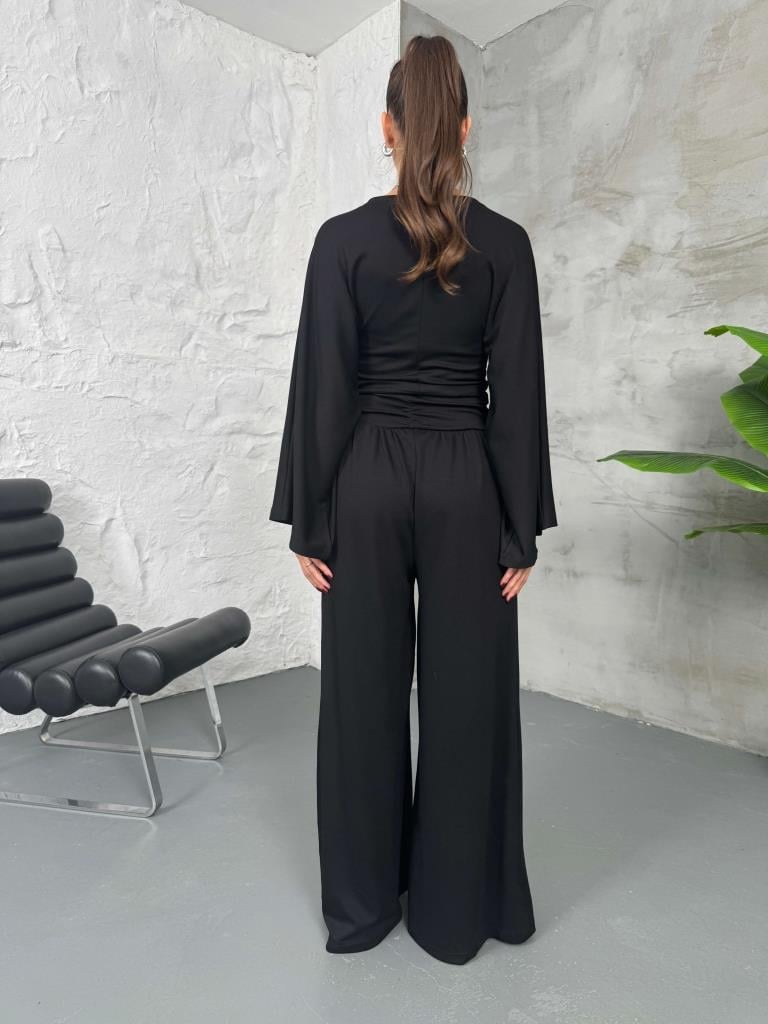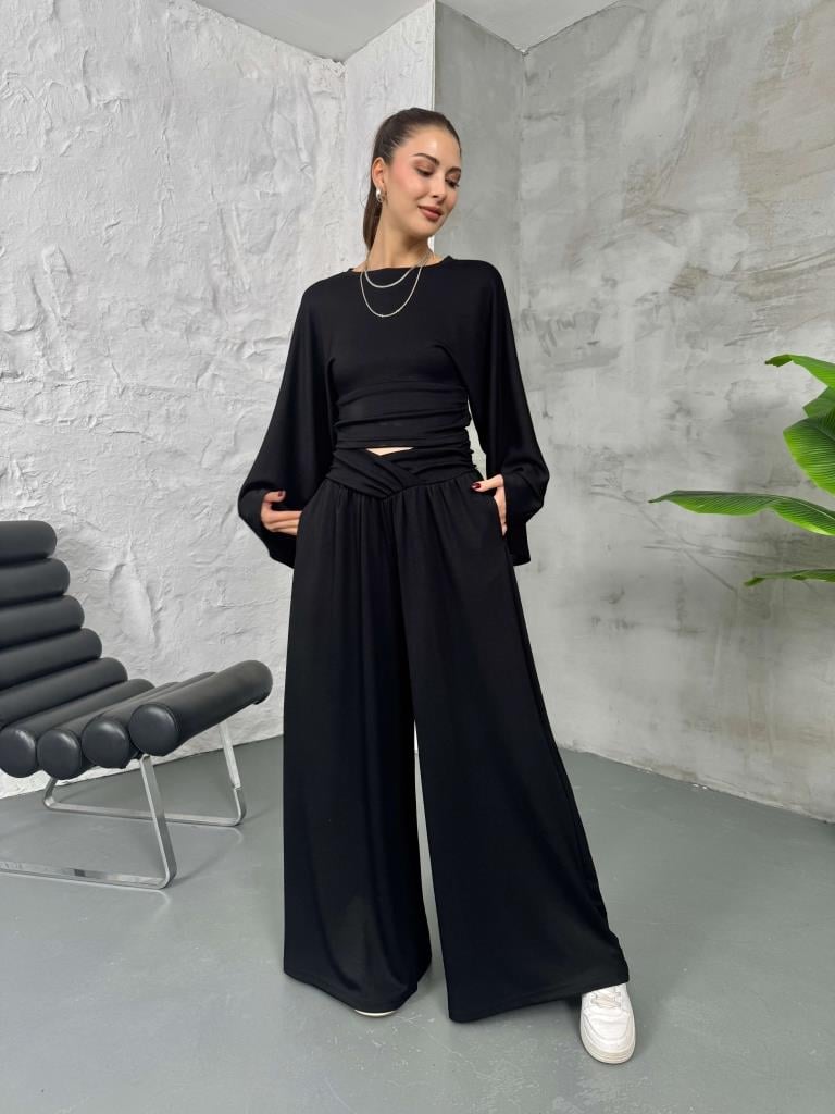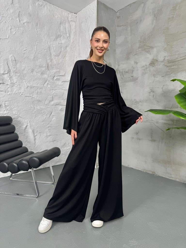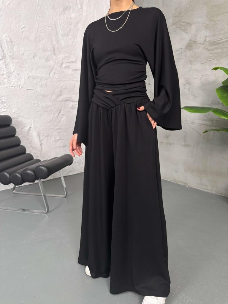 Siyah Kemer Pileli Kolları Volanlı Takım (2136-Siyah)
