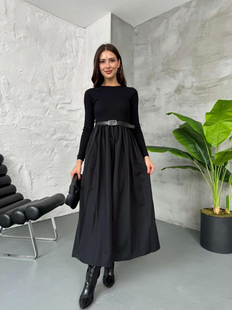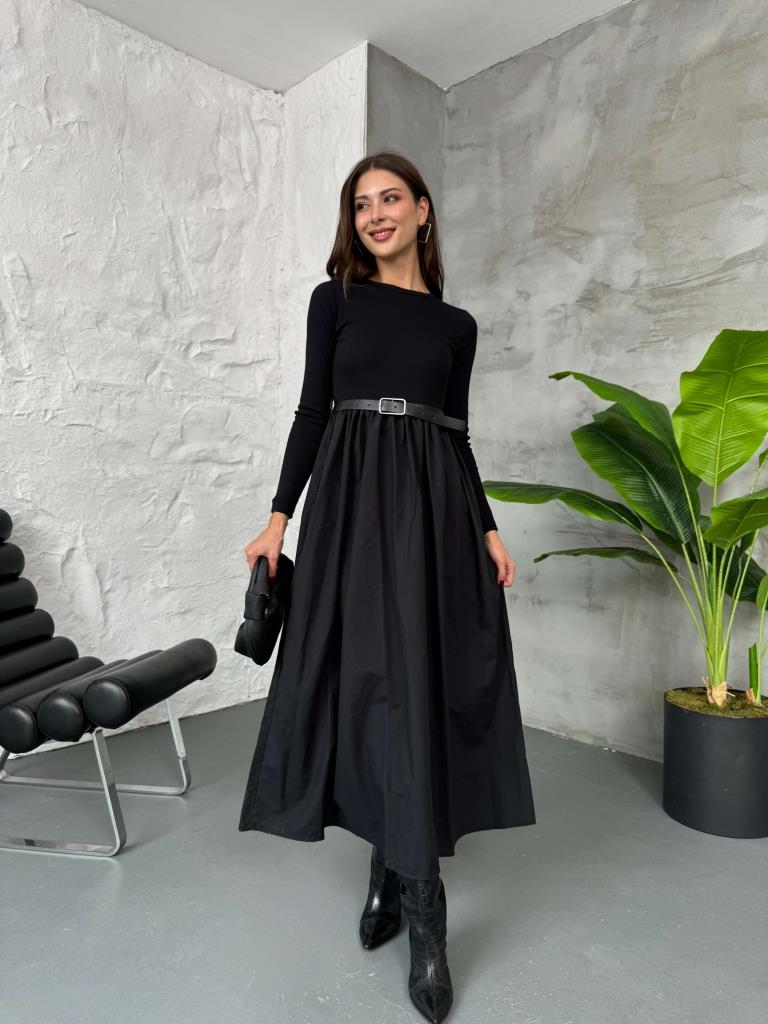 Siyah Kemerli Maxi Elbise (2018-Siyah)