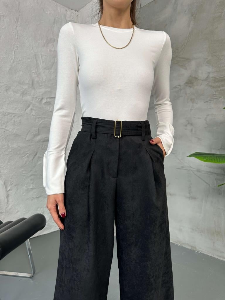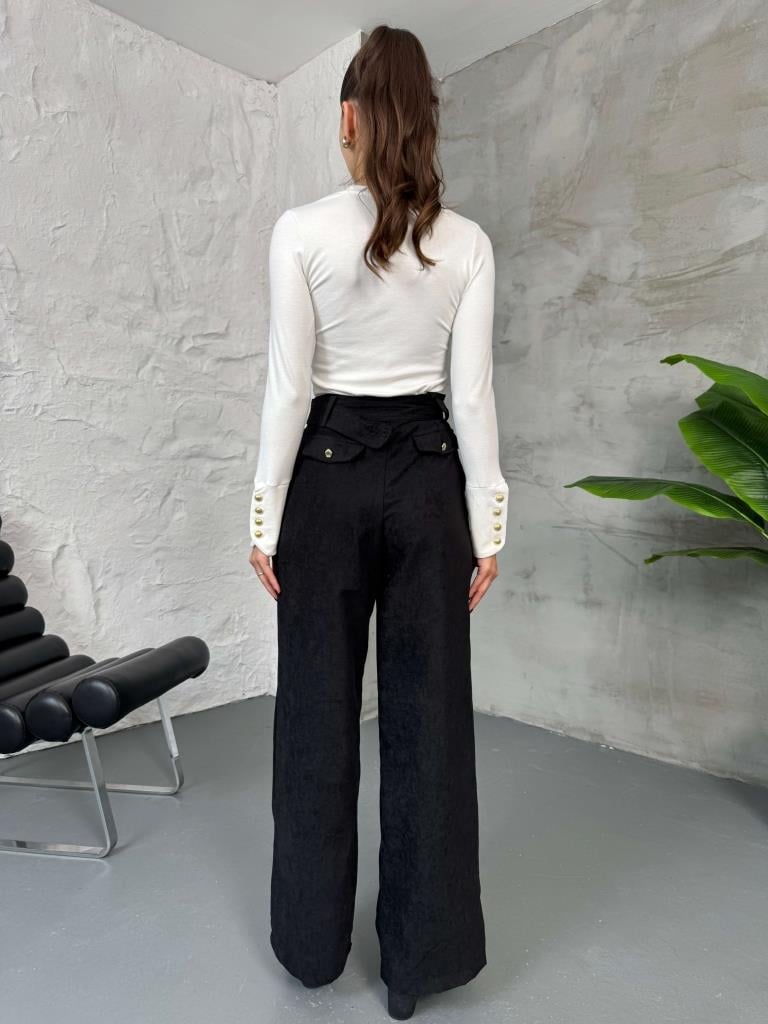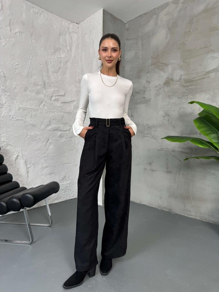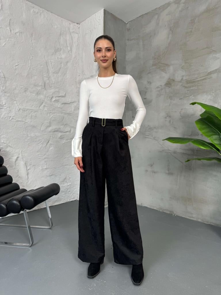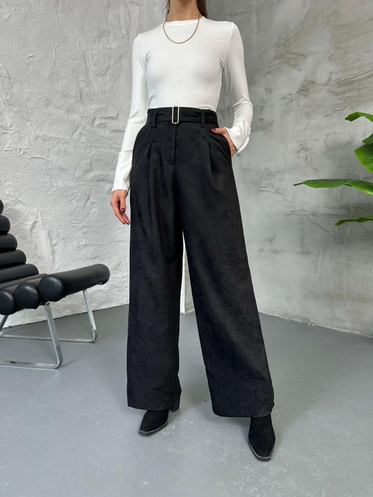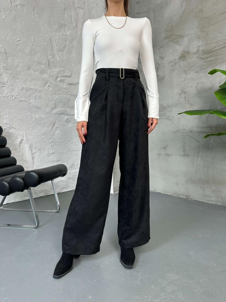 Siyah Kemerli Süet Pantolon (580543-Siyah)