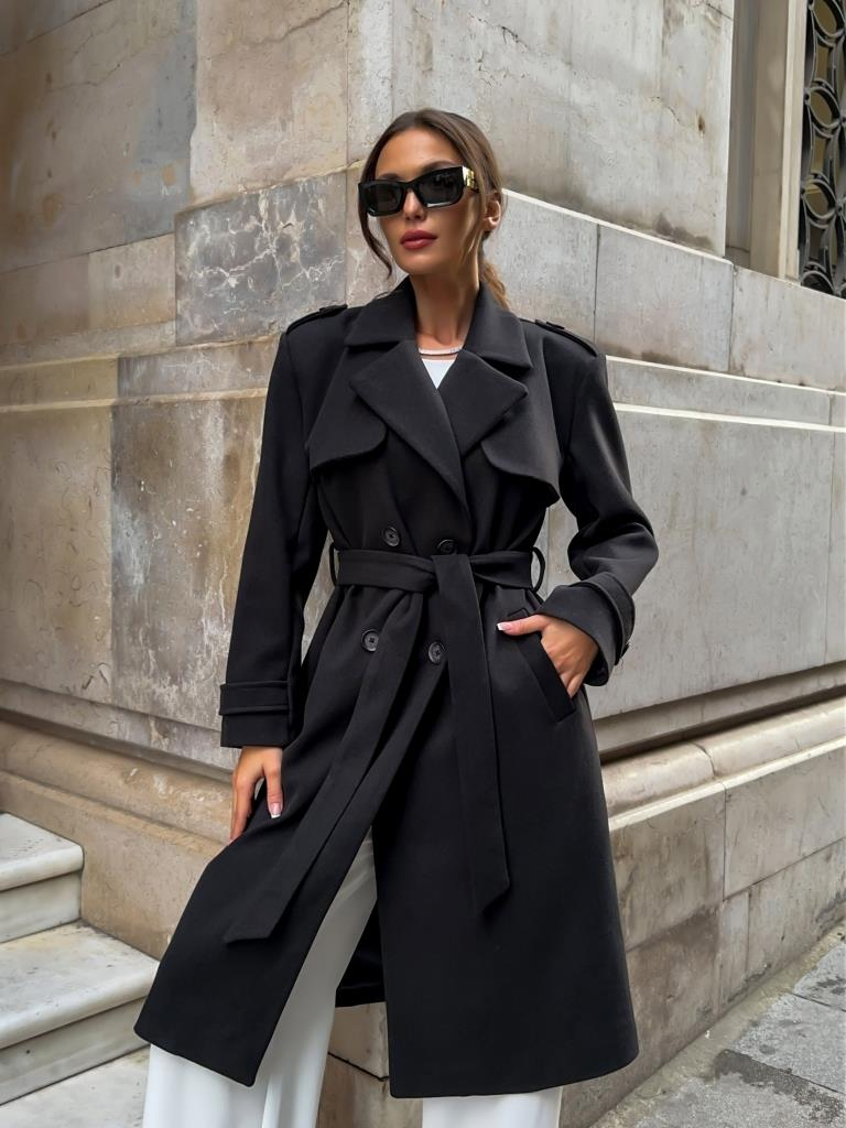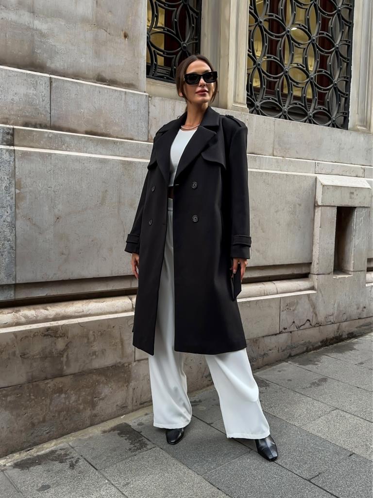 Siyah Omuzu Düğmeli Premium Kaban (T-20013-Siyah)