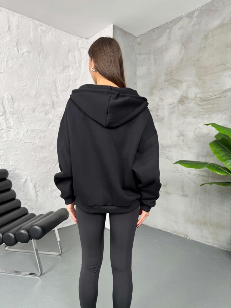 Siyah Ön Fermuarlı Kapüşonlu Sweatshirt (4032-Siyah)