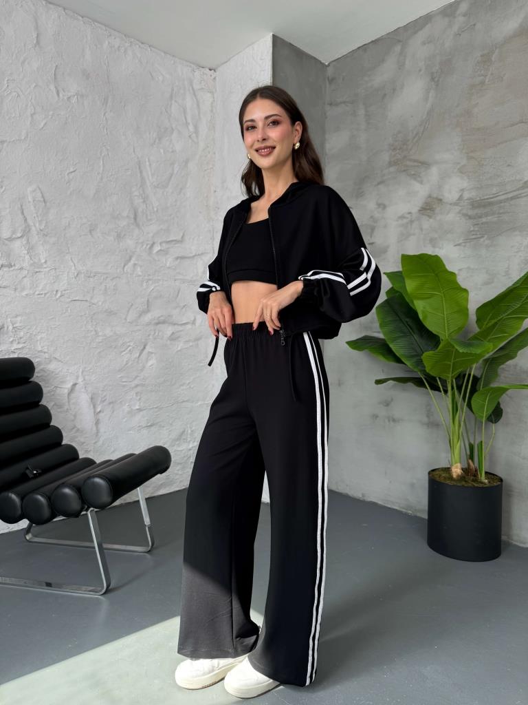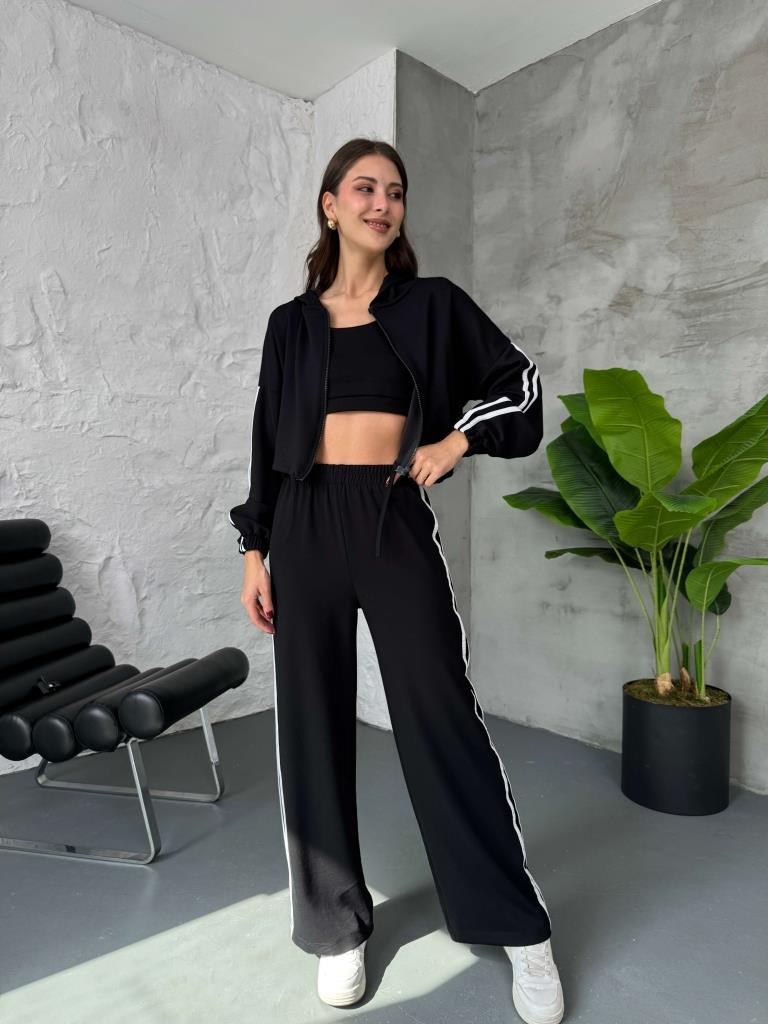 Siyah Üç Parça Kapüşonlu Takım (4040-Siyah)