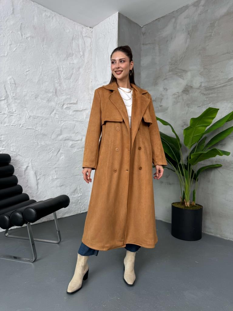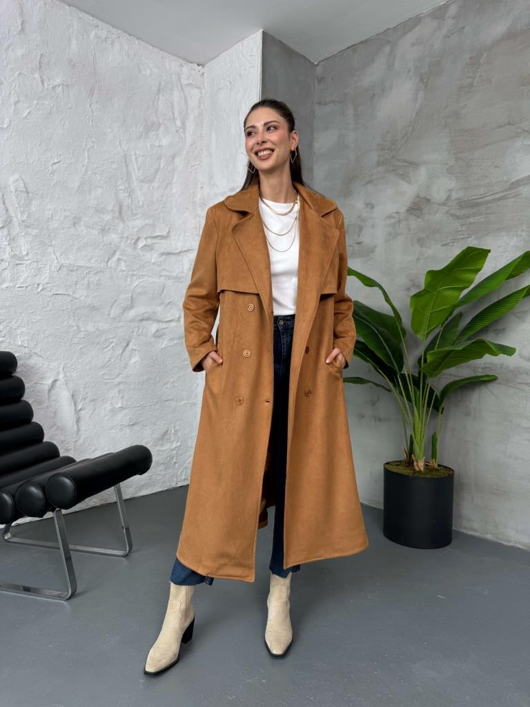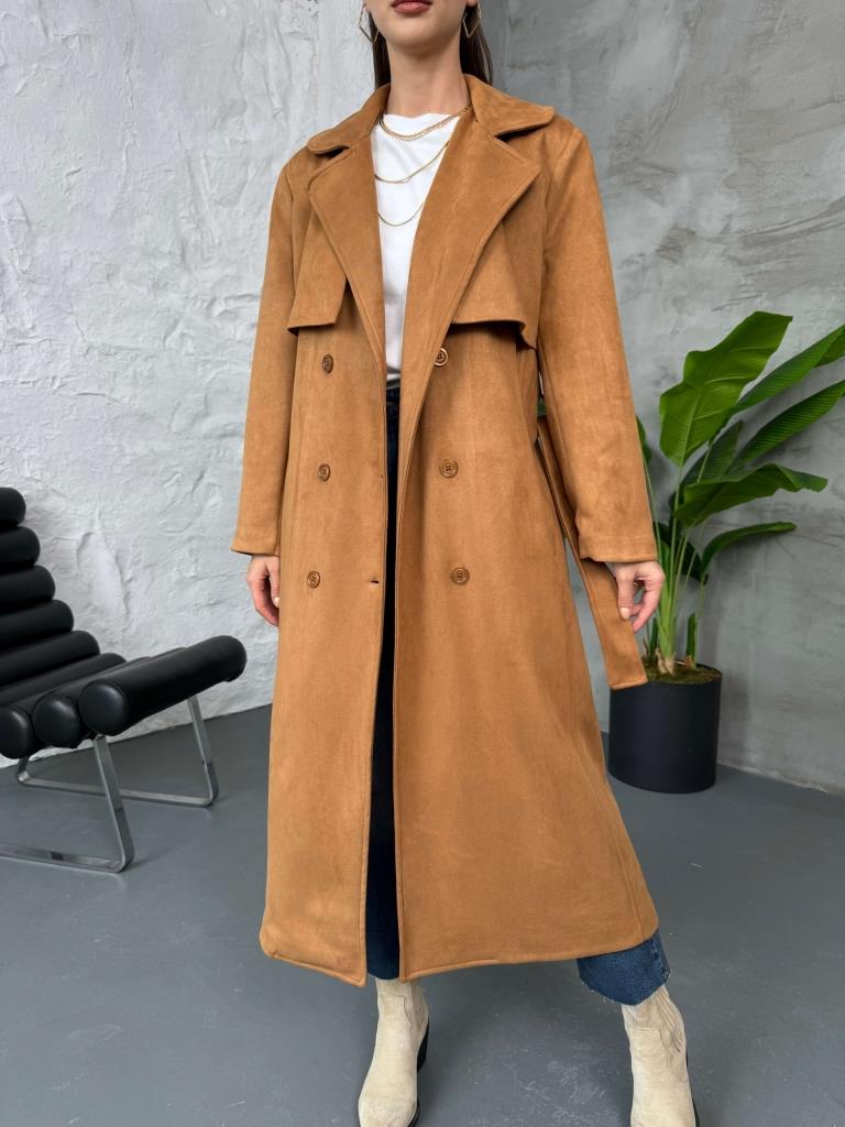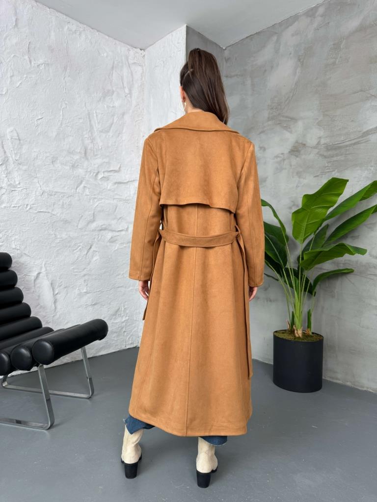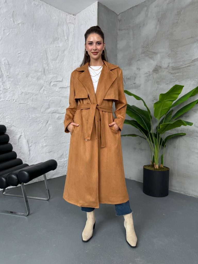 Taba Kuşaklı Süet Trenç (14001-Taba)