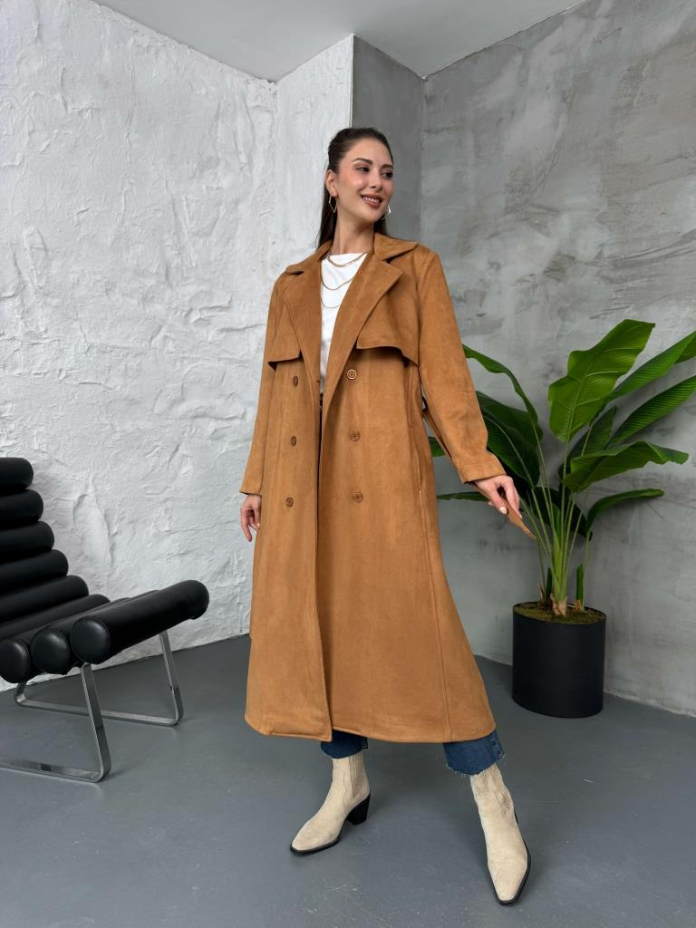 Kahverengi Kuşaklı Süet Trenç Bej Kuşaklı Süet Trenç