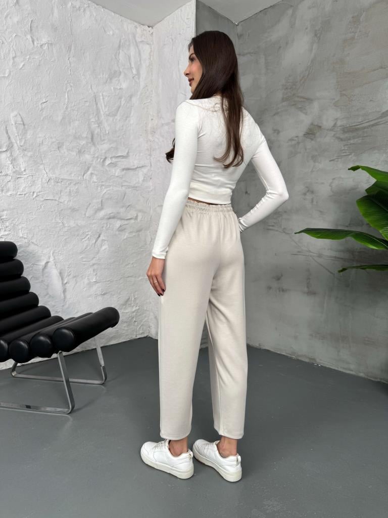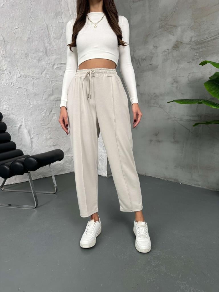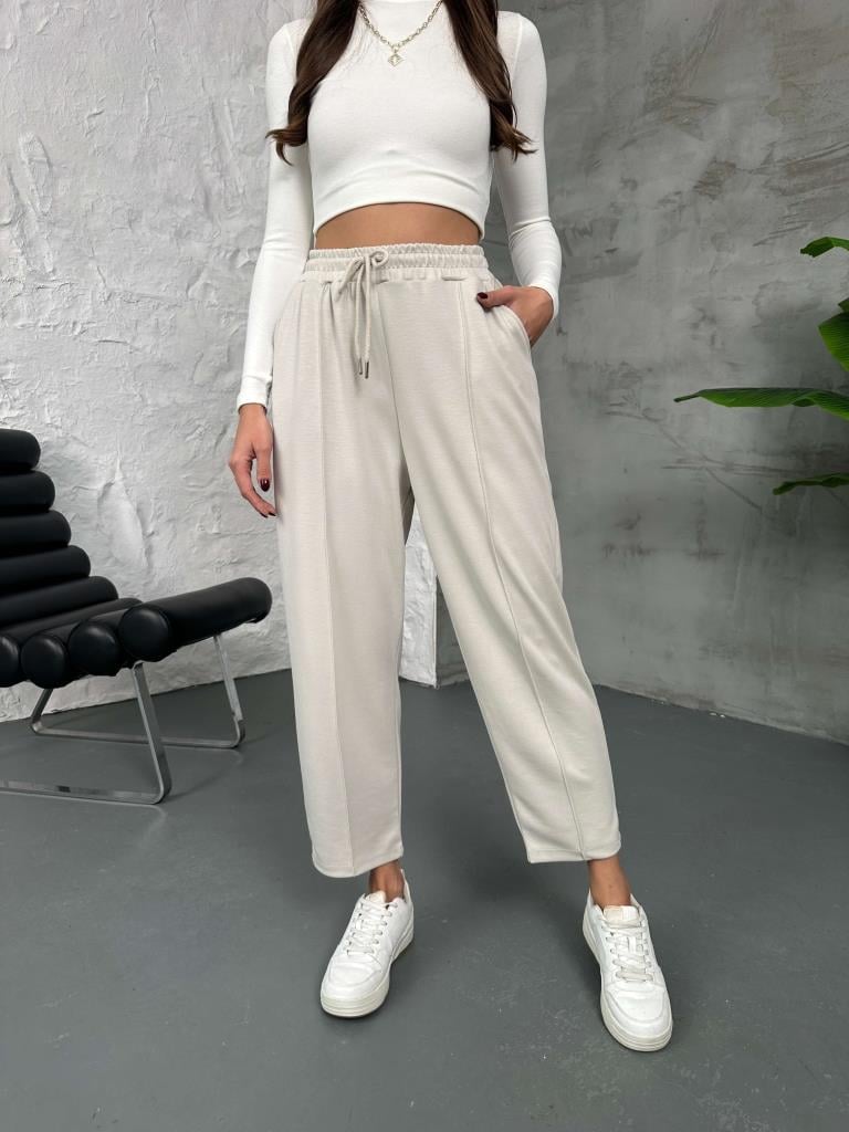 Taş Biyeli Beli Bağcıklı Modal Eşofman (EY8007-Taş)
