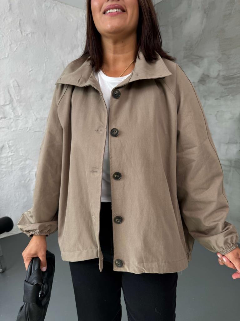 Vizon Oversize Dik Yaka Trenç (9627-VİZON)
