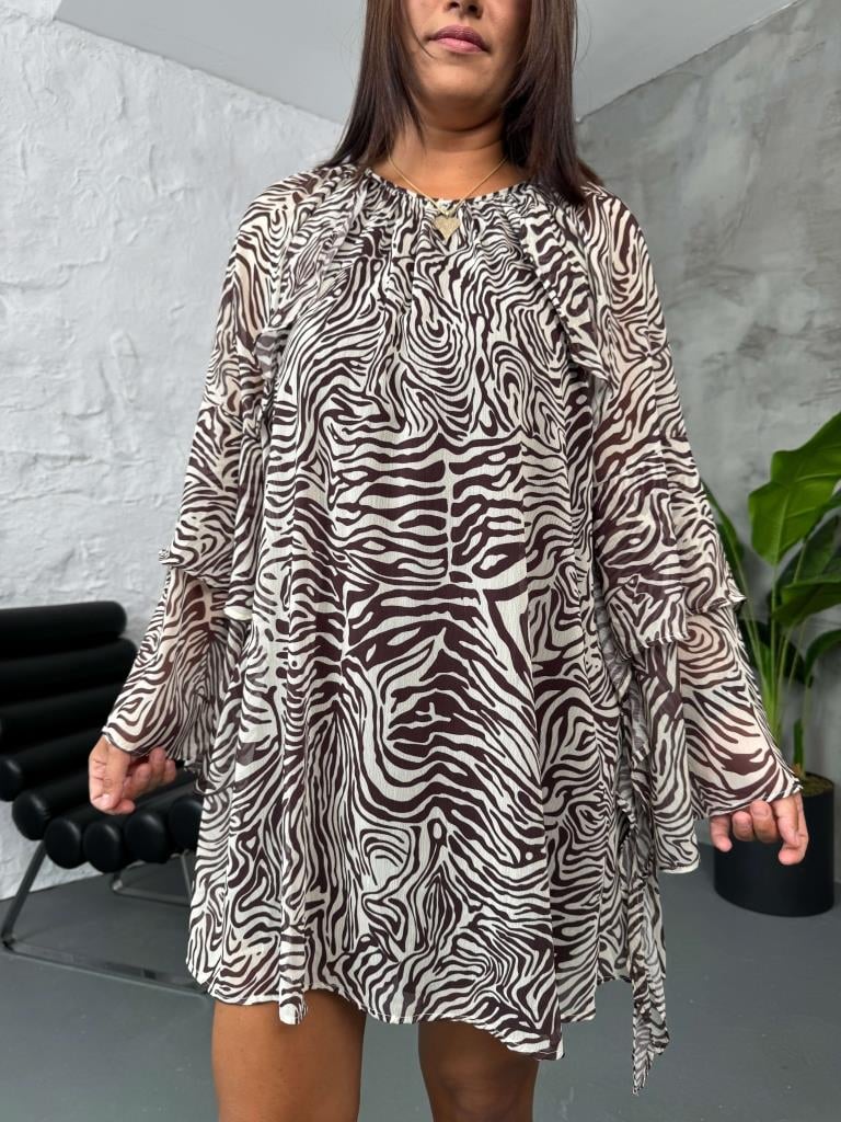 Zebra Desen Yanları Fırfırlı Elbise (01017)